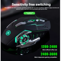 Ергономічна ігрова миша T2 — це поєднання високих технологій і зручності. Завдяки підтримці Bluetooth 5.2 та 2.4G USB-з’єднання легко перемикатися між пристроями. Вбудований акумулятор забезпечує до 90 годин автономної роботи, а динамічне RGB-підсвічування створює яскраву атмосферу. Регулювання DPI у чотирьох рівнях (від 1200 до 3600) дозволяє точно налаштувати чутливість для офісної роботи чи геймінгу. Безшумні кнопки дозволяють комфортно користуватися мишею навіть у тиші. Підтримує Windows, Android та інші Bluetooth-пристрої.