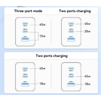 - USB-C1 + (USB-C2 + USB-A): 45 Вт + 15 Вт.